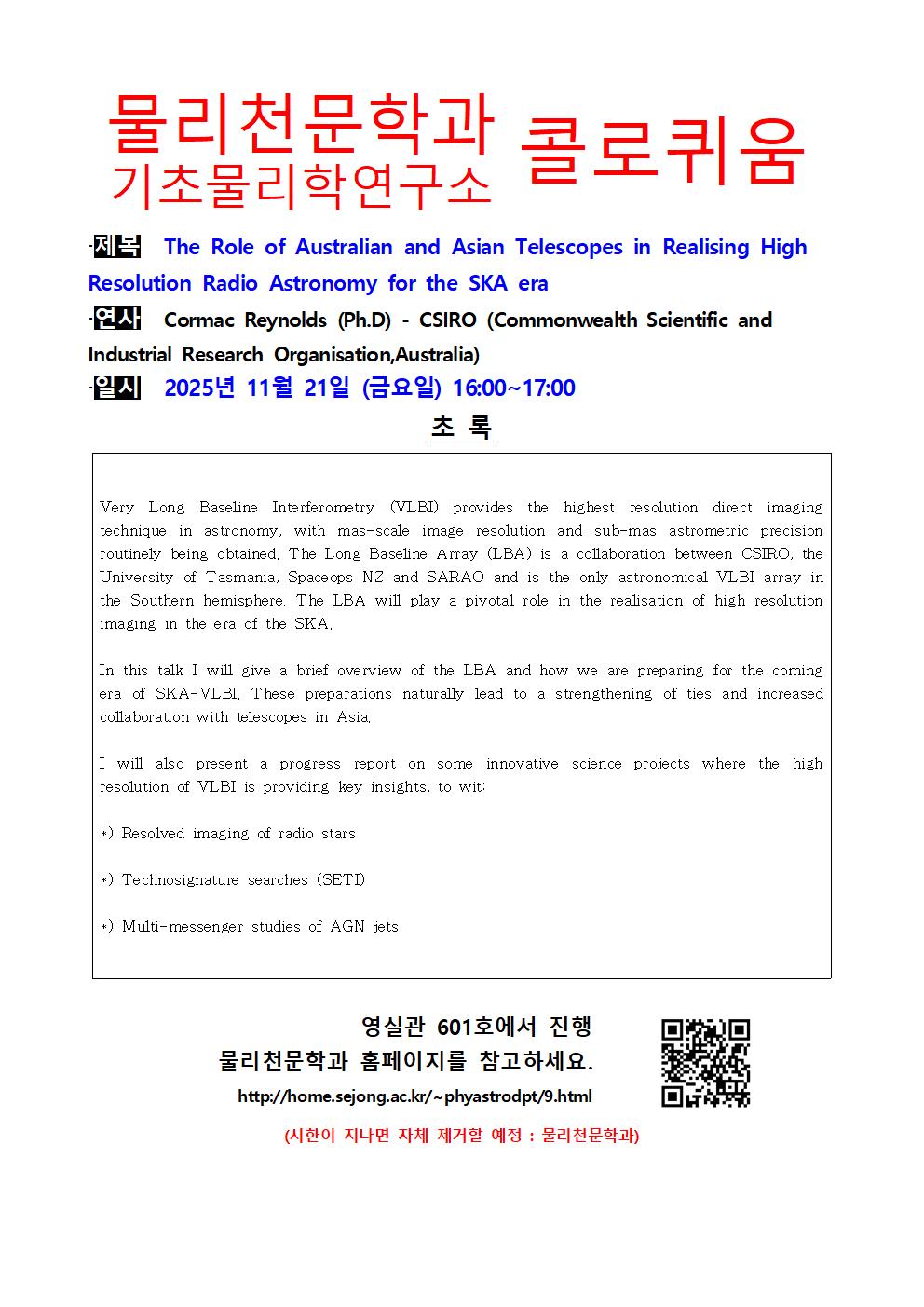 [콜로퀴움] The Role of Australian and Asian Telescopes in Realising High Resolution Radio Astronomy for the SKA era(Cormac Reynolds (Ph.D) - CSIRO (Commonwealth Scientific and Industrial Research Organisation,Australia))